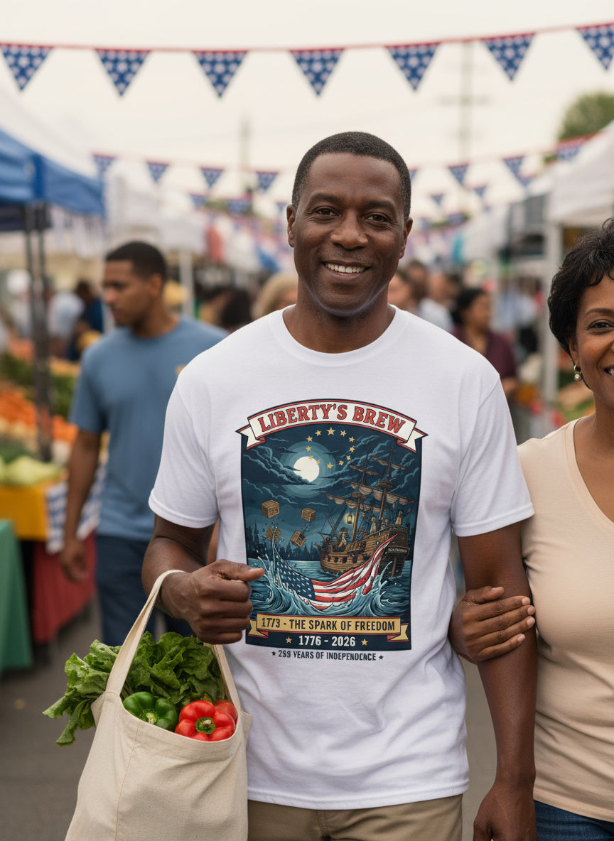 Liberty’s Brew T‑Shirt – 1773 The Spark of Freedom | Patriotic American Heritage Tee