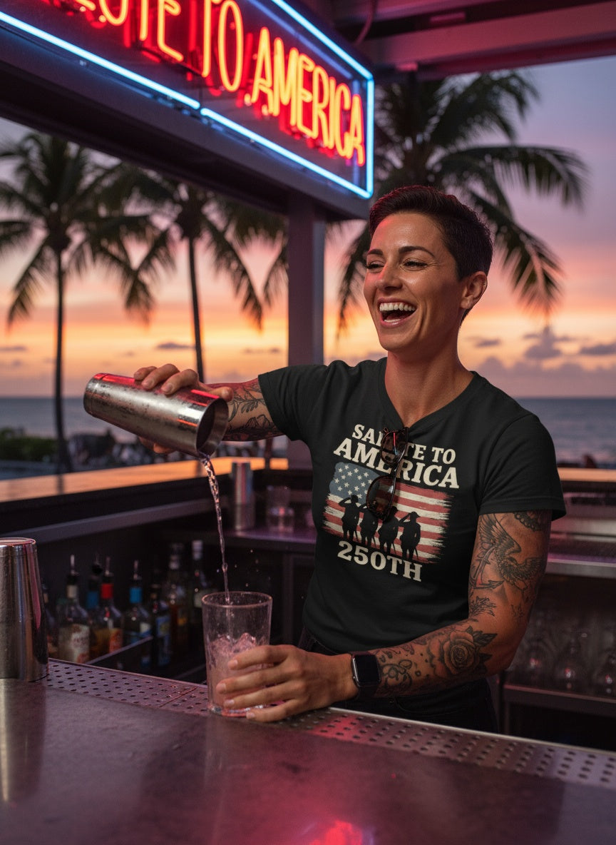 Salute to America T-Shirt | 250th Anniversary Patriotic Women’s Tee – Strong Female Veteran USA Flag Shirt